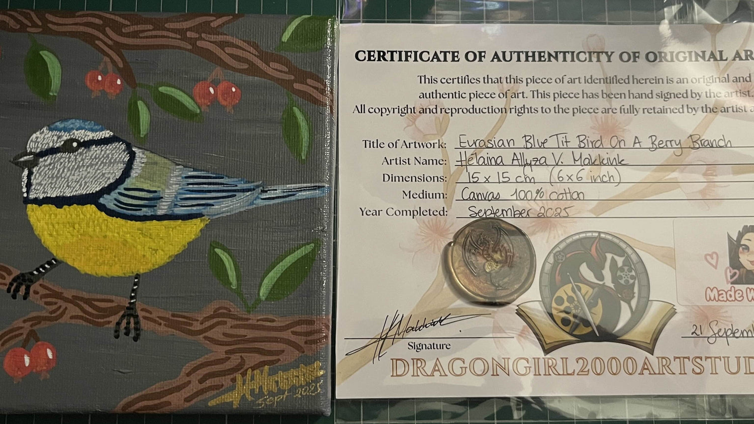 SOLD | Eurasian Blue Tit Bird Hanging Off A Branch